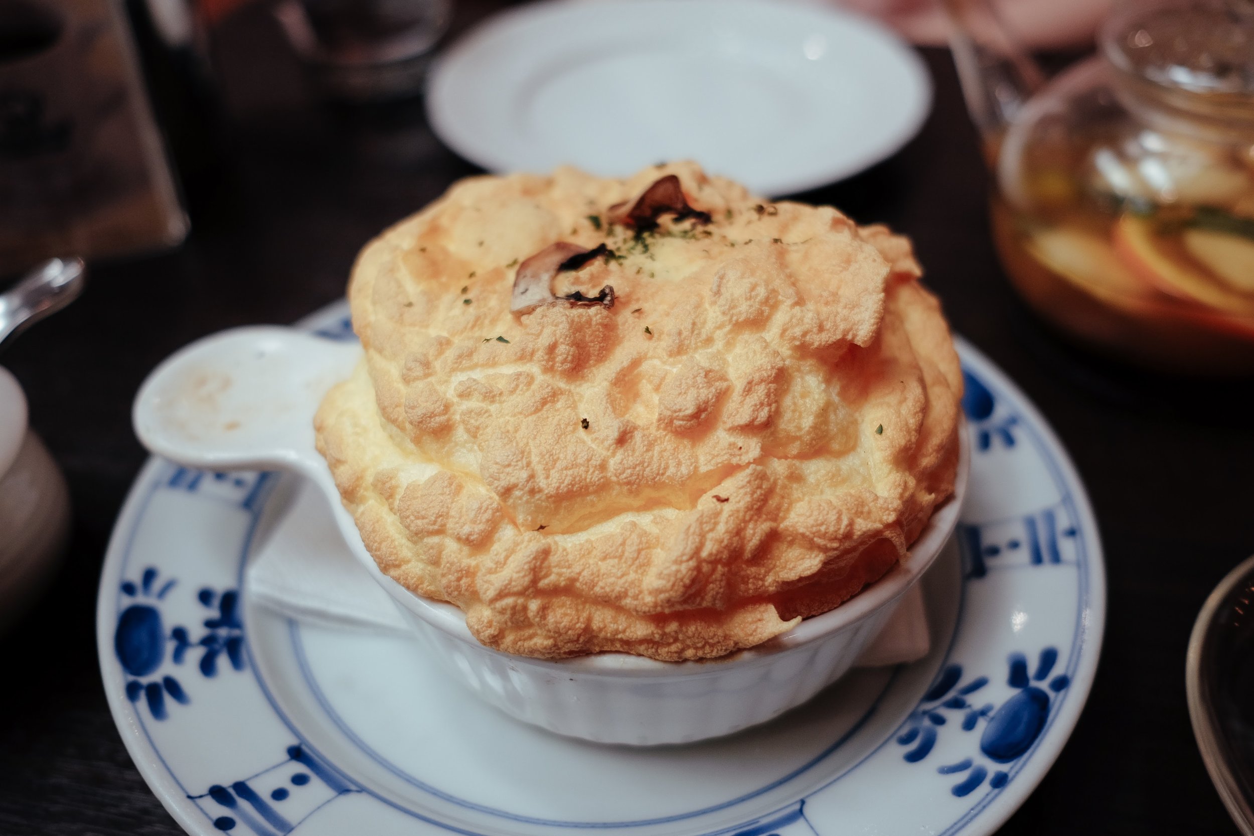 It turned out to be an eventful day! We went to Hoshino Coffee for the first time to have our lunch. Never paid attention to their lunch selection until today, so we were excited to try their Porcini Soufflé. We also ordered the hot fruit tea and Vanilla Soufflé for dessert.