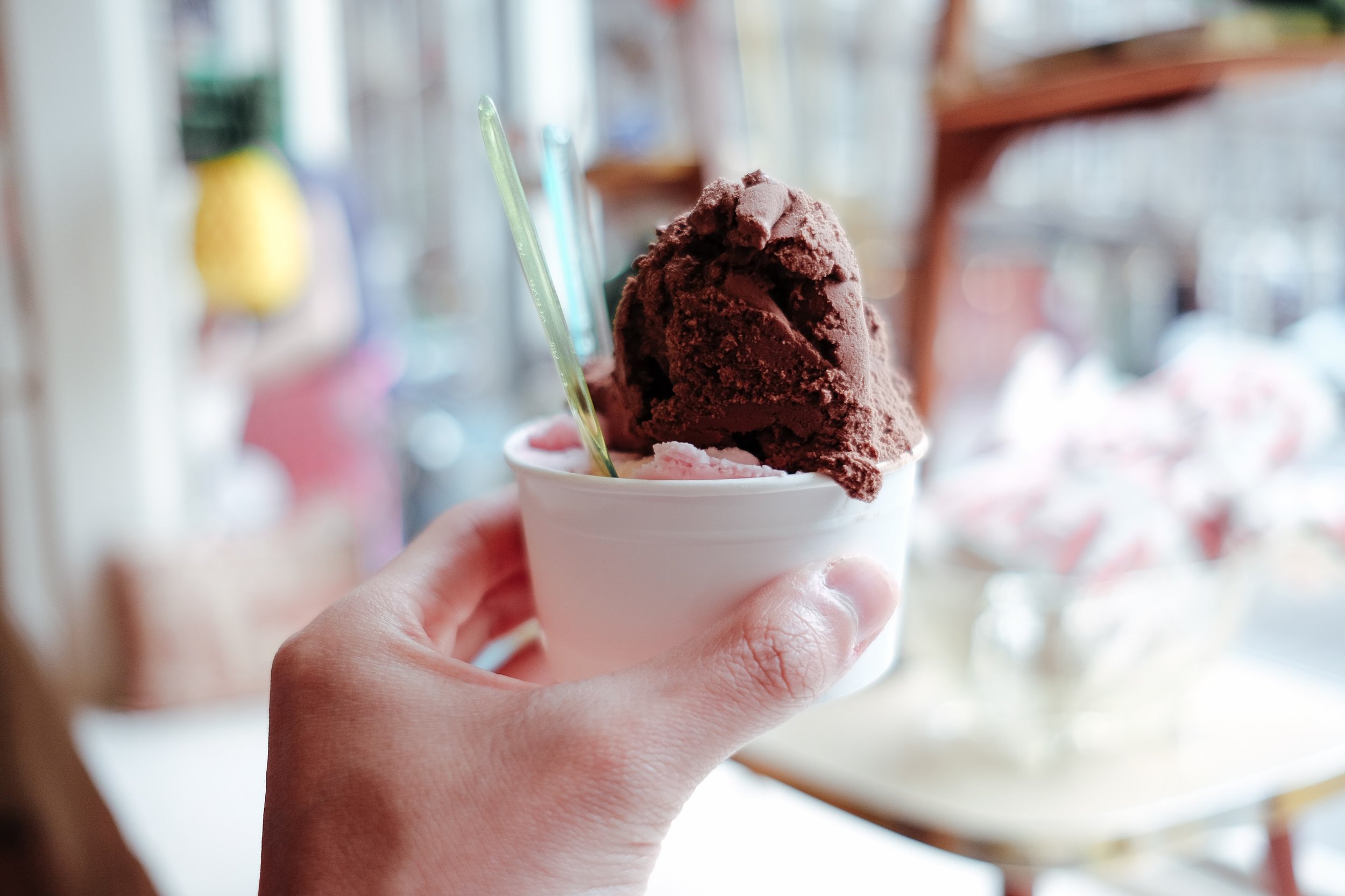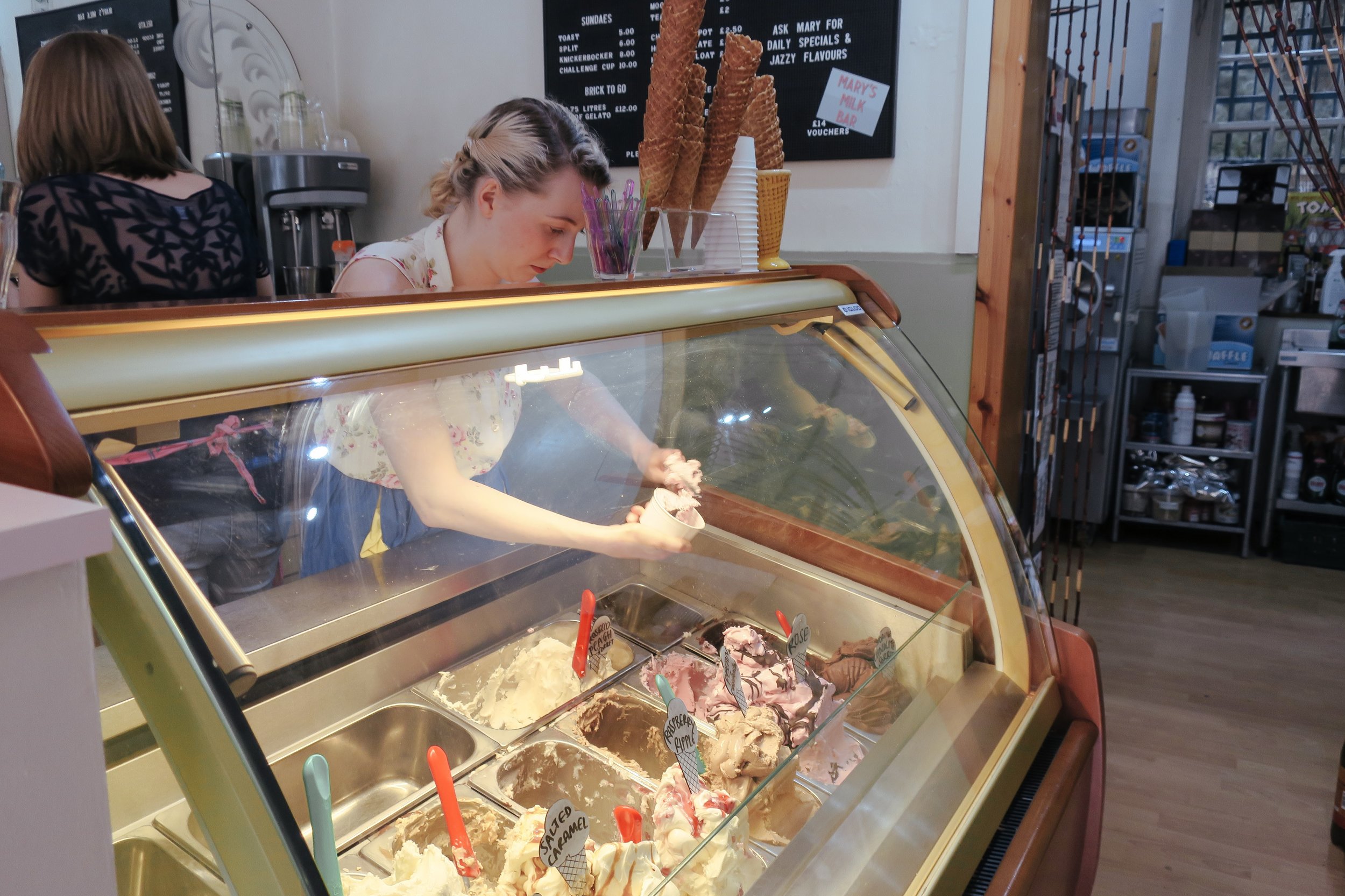 Our legs continue to bring us to the Grassmarket area, where we got drawn into “Mary’s Milk Bar” to enjoy a fresh cup of gelato. This is the cutest gelato shop that I have ever been in! Seated in front of the window enjoying the view of Edinburgh Castle while indulging in gelato, ain’t we lucky?